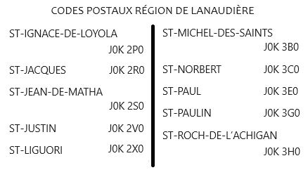 Code postal région de Lanaudière